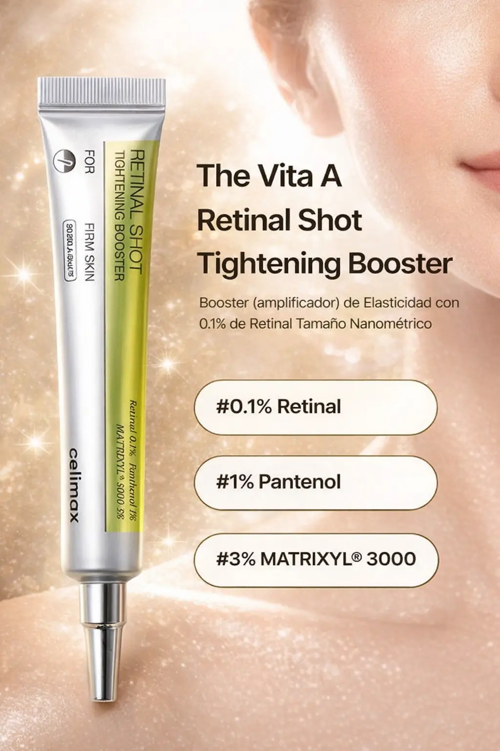 Si sientes que tu rutina actual ya no te da resultados o estás lista para graduarte del retinol tradicional, te presentamos la joya de la corona de Celimax: THE VITA-A Retinal Shot Tightening Booster.