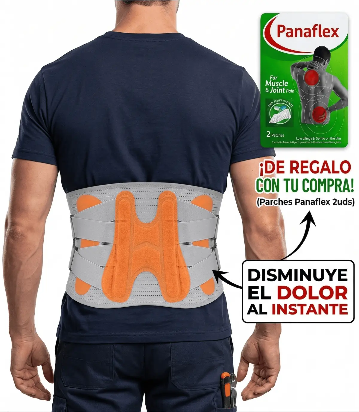 Normalmente, el dolor te hace moverte mal, y moverte mal te causa más dolor. Esta combinación rompe ese ciclo: la faja te da la postura correcta y el parche elimina la tensión acumulada.
