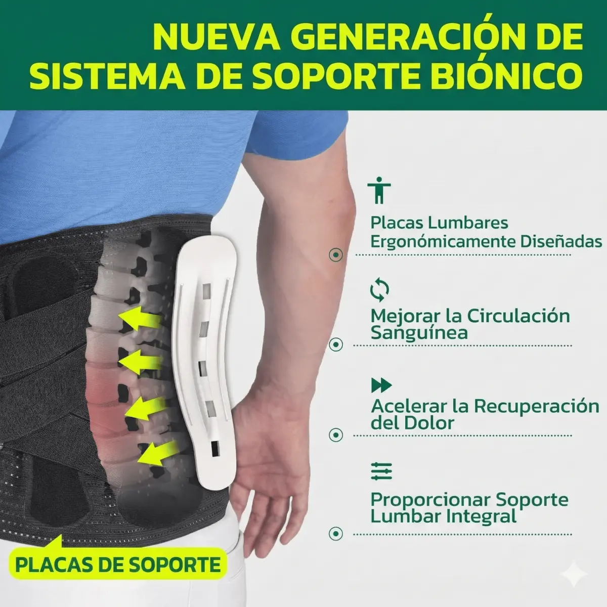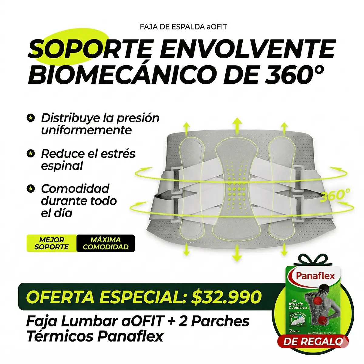 En lugar de gastar en sesiones costosas o analgésicos constantes, inviertes en una solución mecánica (faja) y una térmica (parches) que puedes usar cada vez que sientas una molestia, sin efectos secundarios.